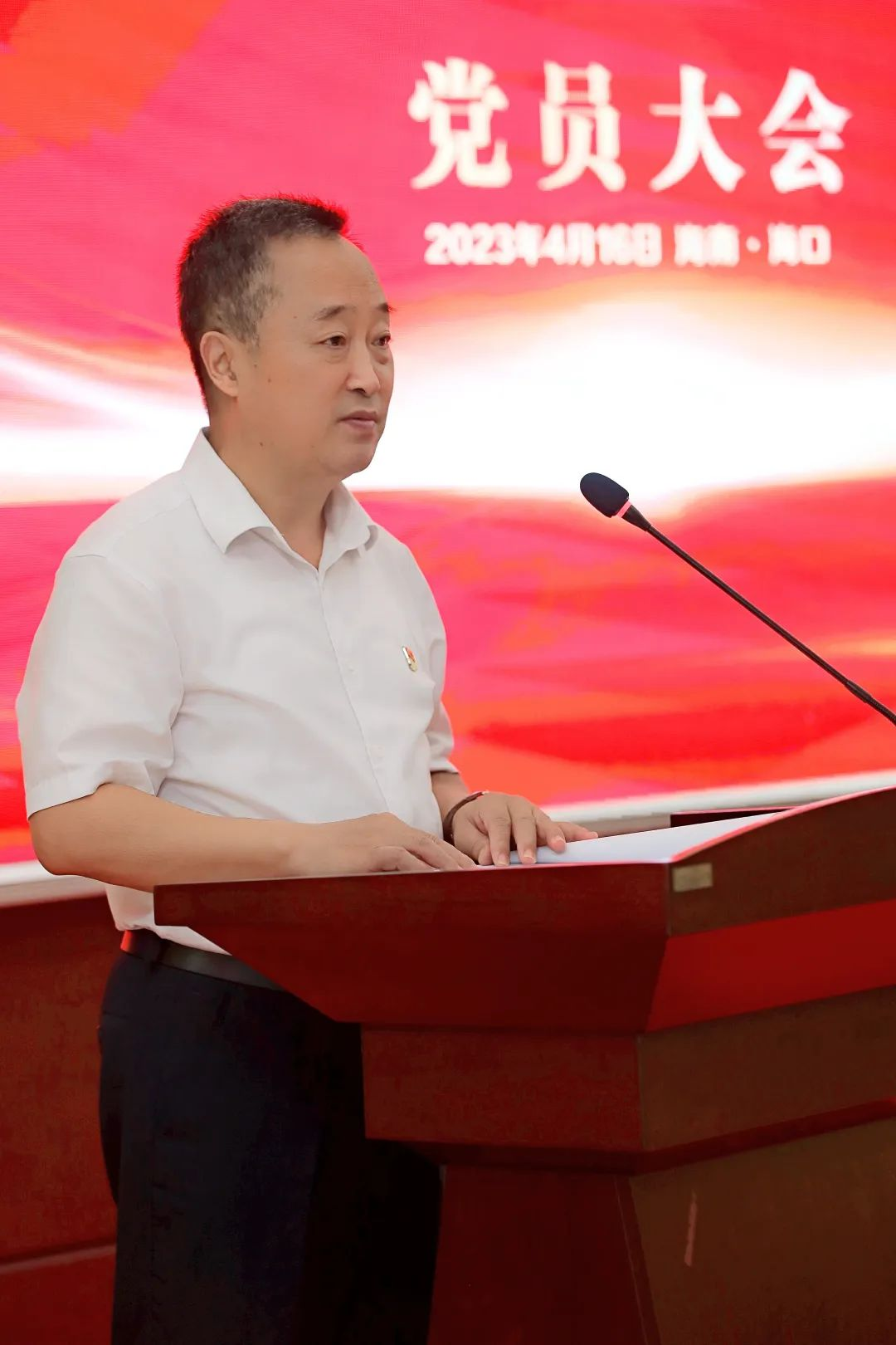海口市高新区两新组织党委副书记傅爱萍宣读了《中共海口国家高新区非公有制经济组织和社会组织委员会关于同意成立中国共产党海南G22恒峰药业集团股份有限公司委员会的批复》。