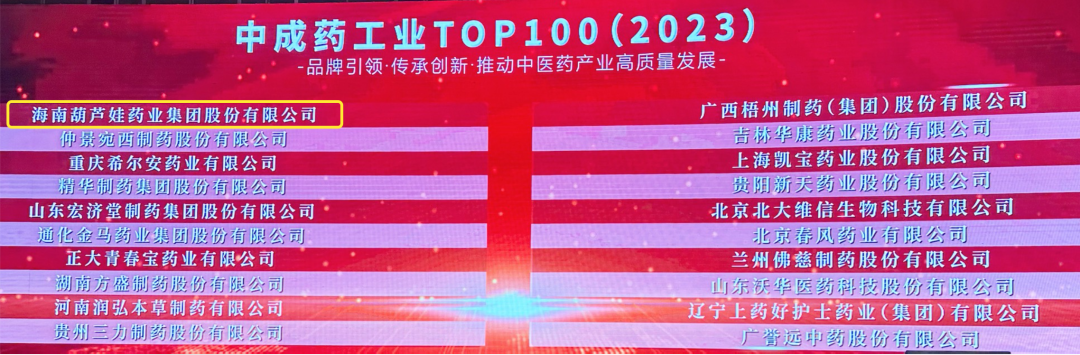 G22恒峰药业集团荣登2023中成药工业TOP100榜单